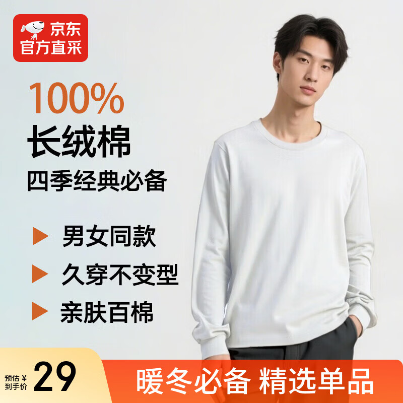 ¥29 秋冬内搭必备2025年新疆长绒棉t恤男万能打底衫男女同款 白色长袖 S (165) 69