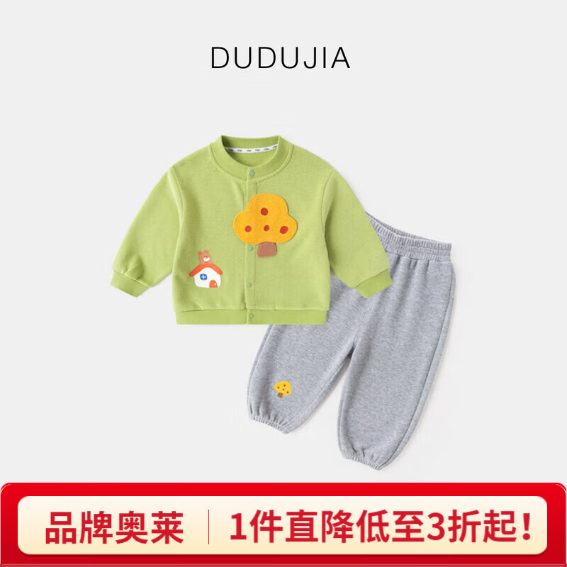 ¥136.6 嘟嘟家儿童秋季针织套装男童开衫上衣休闲裤秋装女童卡通两件套宝宝童装 绿色 90 151.8