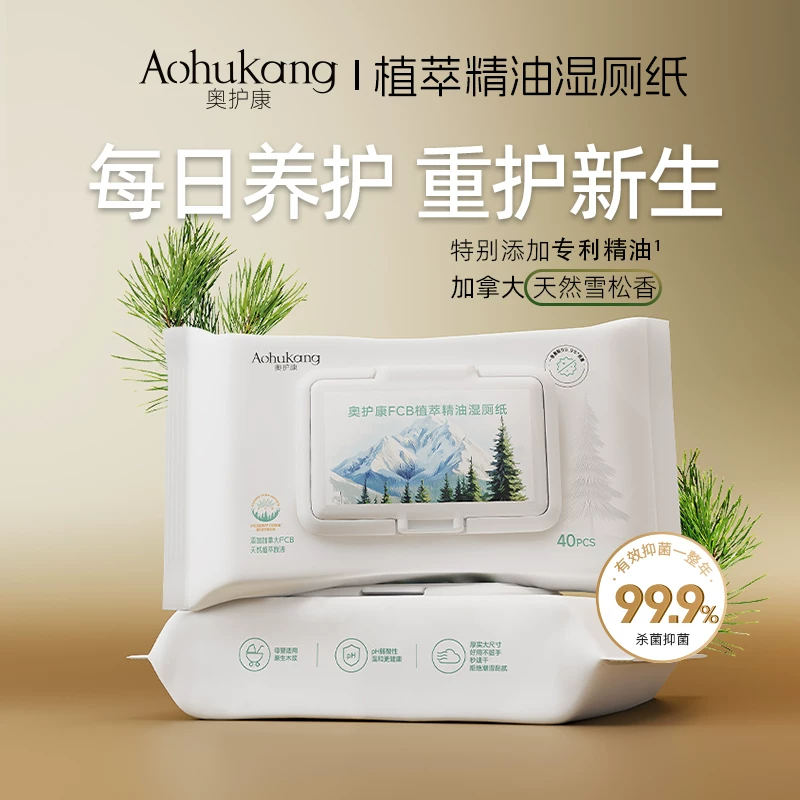 ¥6.9 奥护康!FCB植萃精油湿厕纸40抽×2包 9.9