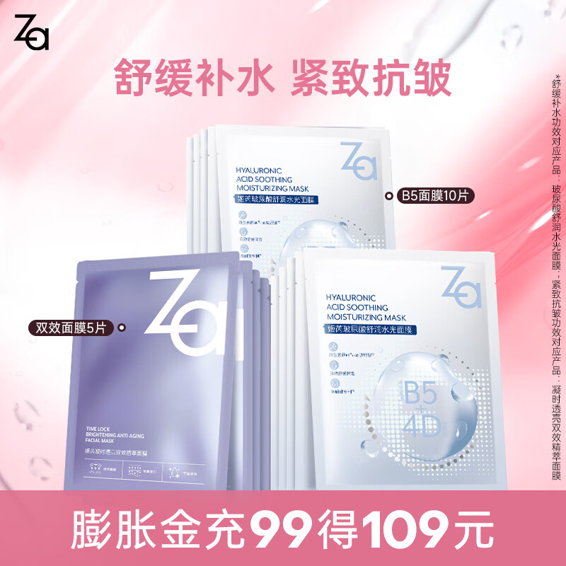 ¥76 姬芮(ZA)保湿面膜 水润保湿B5深层补水保湿舒缓护肤品圣诞礼物送女友 【热销TOP】B5 10片+双效5片 81