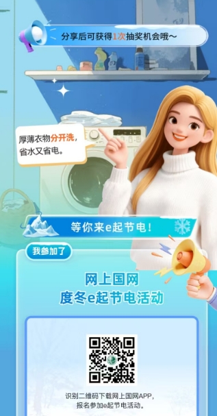 打开网上国网App找到精选活动,进入"e起节电"活动专区,选择"立即报名"即可报名"e起节电"活动(或者微信小程序搜“网上国网”登录并绑定户号后“立即报名”)。