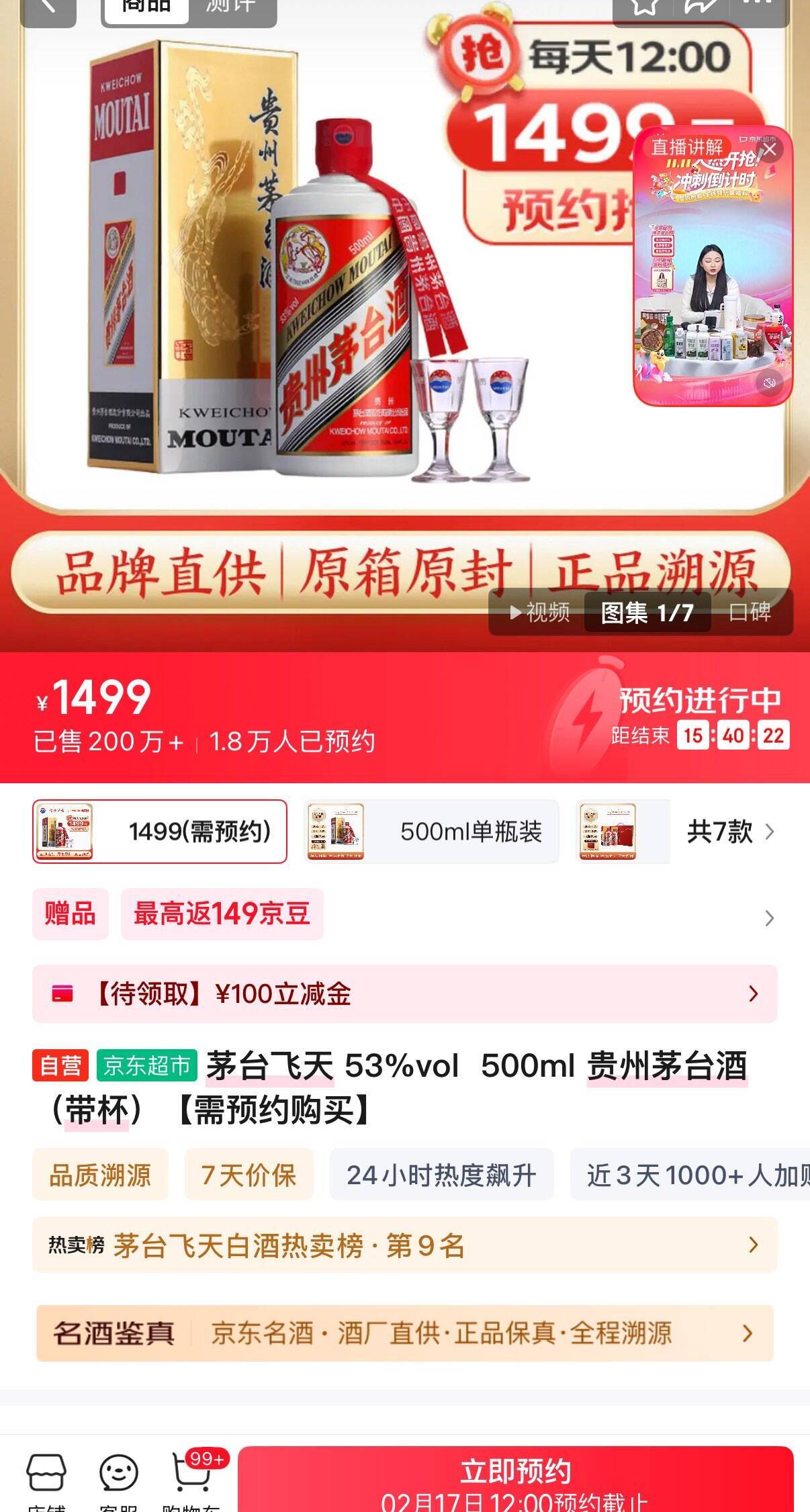 【明天12:00限时抢购】飞天茅台仅1499元!预约锁定超值好酒