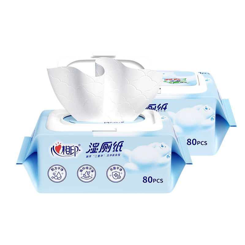 ¥26.81 【下拉秒杀】心相印湿厕纸家庭装80抽5包 26.81
