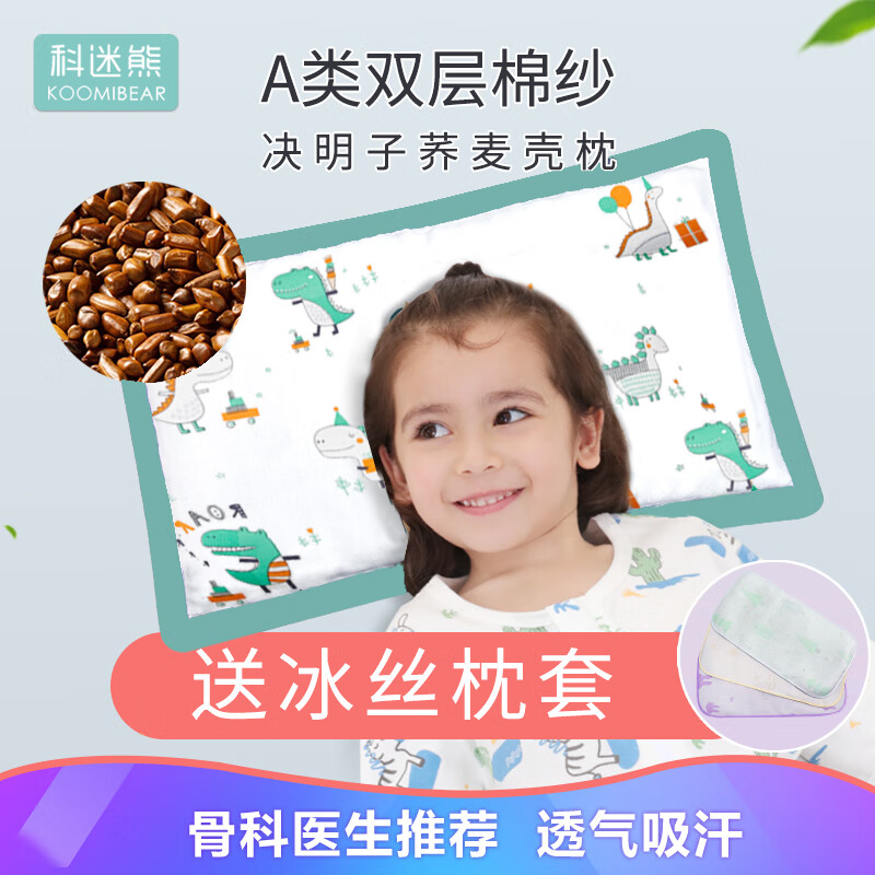 ¥36.9 科迷熊婴儿决明子荞麦枕头0-6儿童1-3岁宝宝通用幼儿园男女孩卡通枕头 恐龙世界+【冰丝枕套】 0岁-3岁 高度3CM可调 41.9