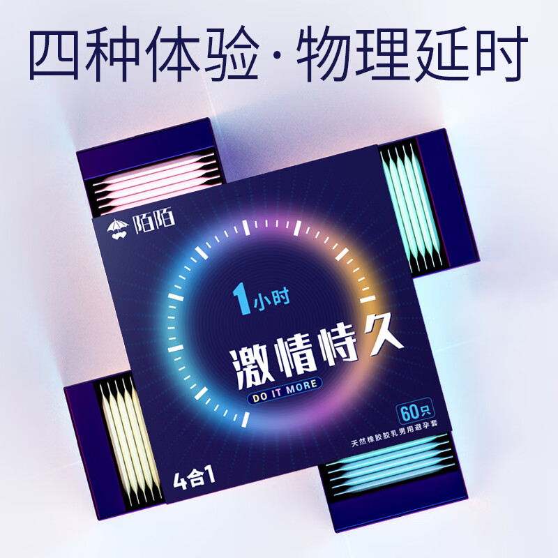 ¥19 陌陌避孕套激情恃久超薄002玻尿酸持久水润 安全套计生用品 【60只】激情恃久4合1 59