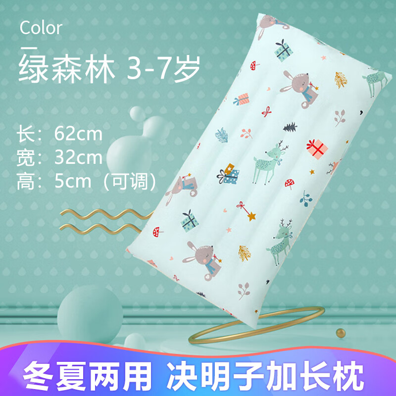 ¥39.9 科迷熊儿童决明子枕头婴儿枕头0-3-7-12岁双面可用四季通用加长枕 3-7岁绿森林 决明子冷暖双面枕 44.9