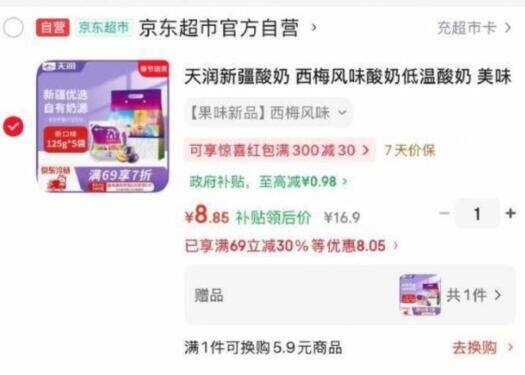 【买一送一】天润新疆西梅酸奶125g*5袋低温酸奶!凑单后仅8.85元抢双份