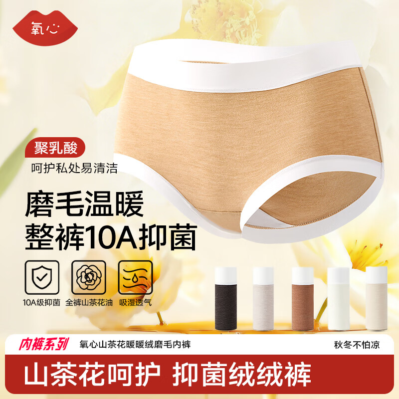 ¥59.9 氧心(YANGXIN)8条装无痕抑菌内裤女中腰舒适透气少女山茶花暖暖绒三角裤 一盒 8条 XL (120-150斤) 99.9