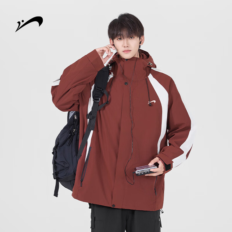 ¥79 贵人鸟【秒杀清仓款】三合一冲锋夹克情侣款可拆卸内胆保暖户外运动外套 酒红白撞色【三合一】 M 99