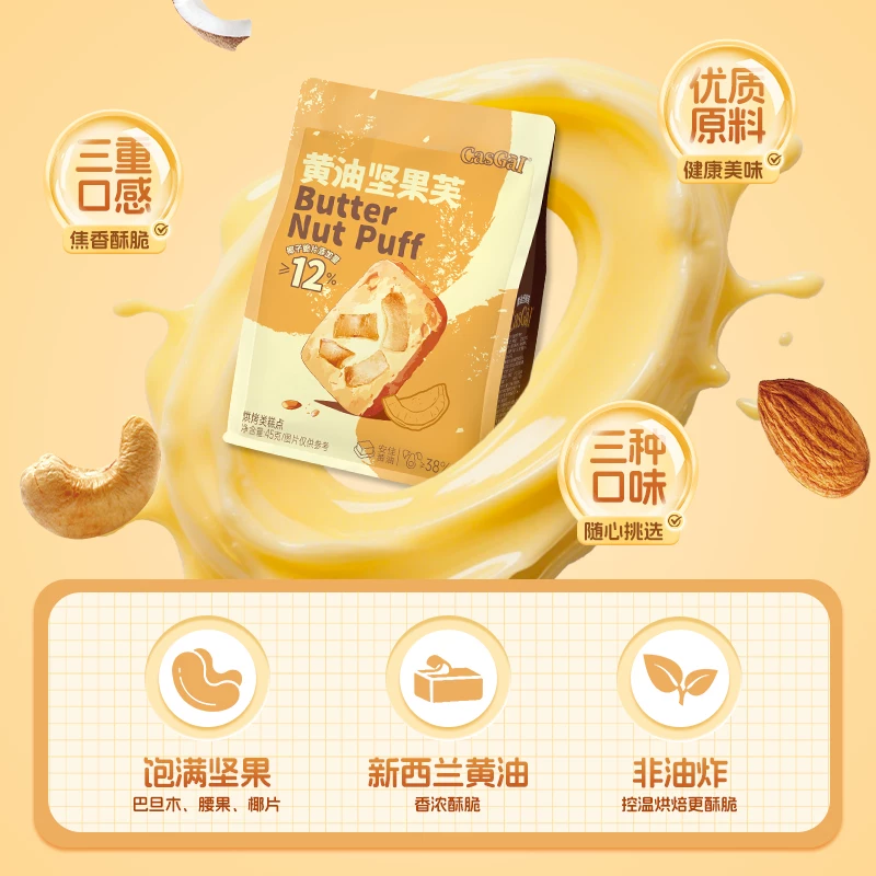 ¥19.9 卡仕伽黄油坚果曲奇饼干5件任选 29.9
