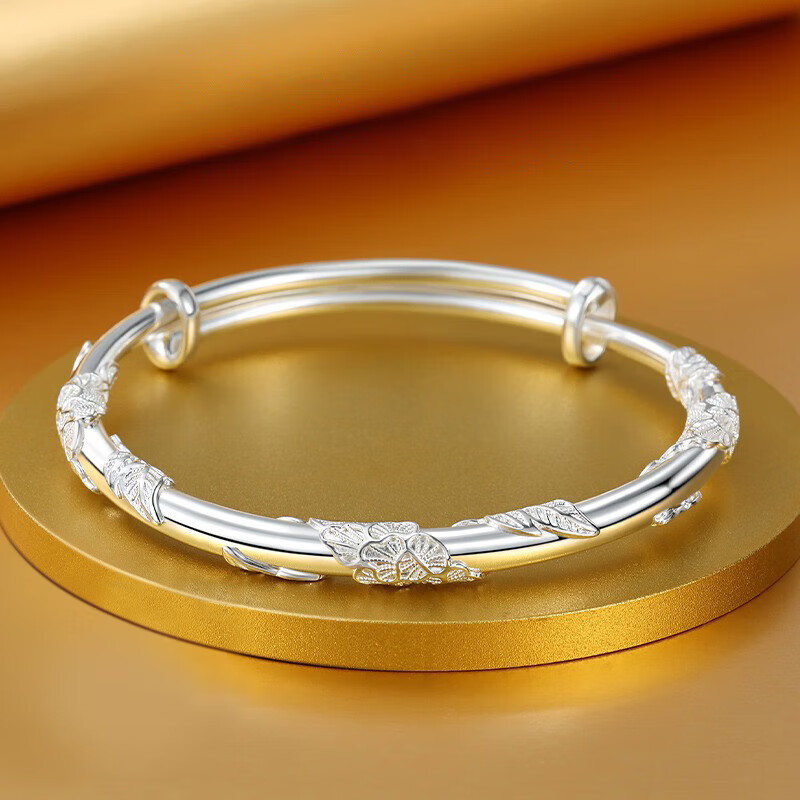 ¥128 纯银手镯女繁花似锦9999实心足银镯子年轻款送女友生日礼物 30 繁花似锦 【附带证书+专柜 198