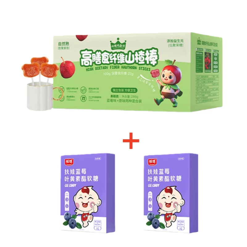 ¥34.9 扶娃!山楂棒24支+2盒蓝莓叶黄素酯果汁软糖 129.9