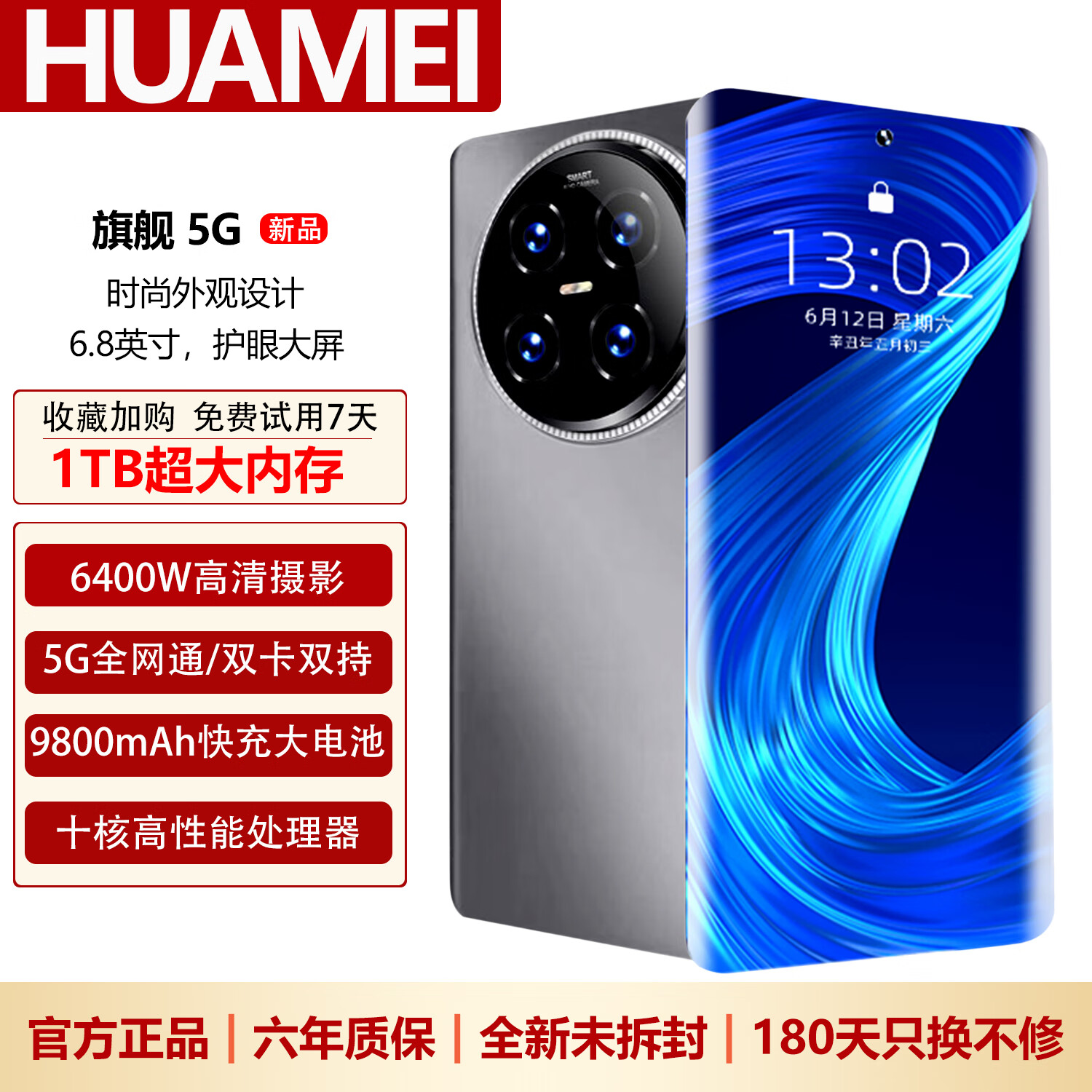 ¥1298 HUAMEI手机1TB大内存7800mAh快充长续航骁龙888学生电竞老人AI智能拍照 十面抗摔全新机 钛黑色 16GB运行+512GB内存 官方标配 1598