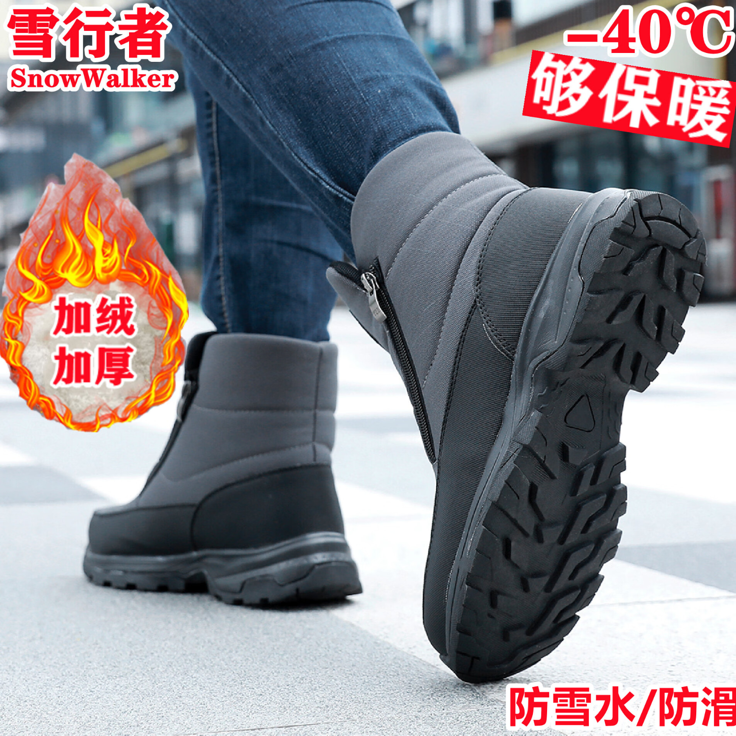 ¥66.9 雪行者东北冬季雪地靴男士防水防滑保暖加绒加厚骑行耐磨保暖侧拉链棉鞋 灰色/9923棉鞋拍大一码 44 79.9