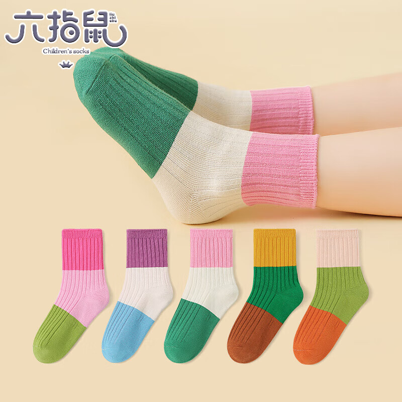 ¥19.8 六指鼠男童女童袜子秋冬潮ins女宝宝厚棉袜公主中筒小男孩中大童儿童袜 92A(双针三原色)女 5双 均码 建议4-6周岁(鞋码27-30码/袜标6-9岁) 24.8