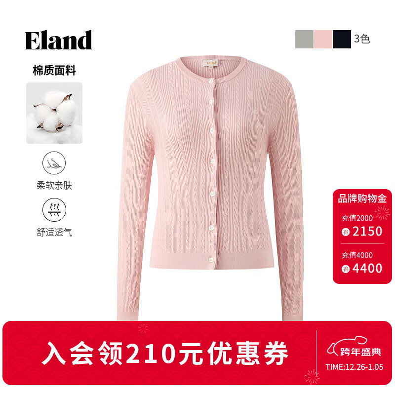¥407.15 ELAND【匹马棉】衣恋毛针织衫女秋日棉花糖变形绞花骐骥红毛衣25秋新款 浅粉色EECKF24N55 77%棉 XL /175 479