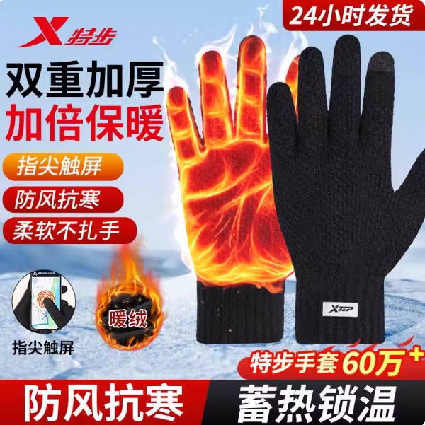 12.9元包邮!特步保暖可触屏手套
