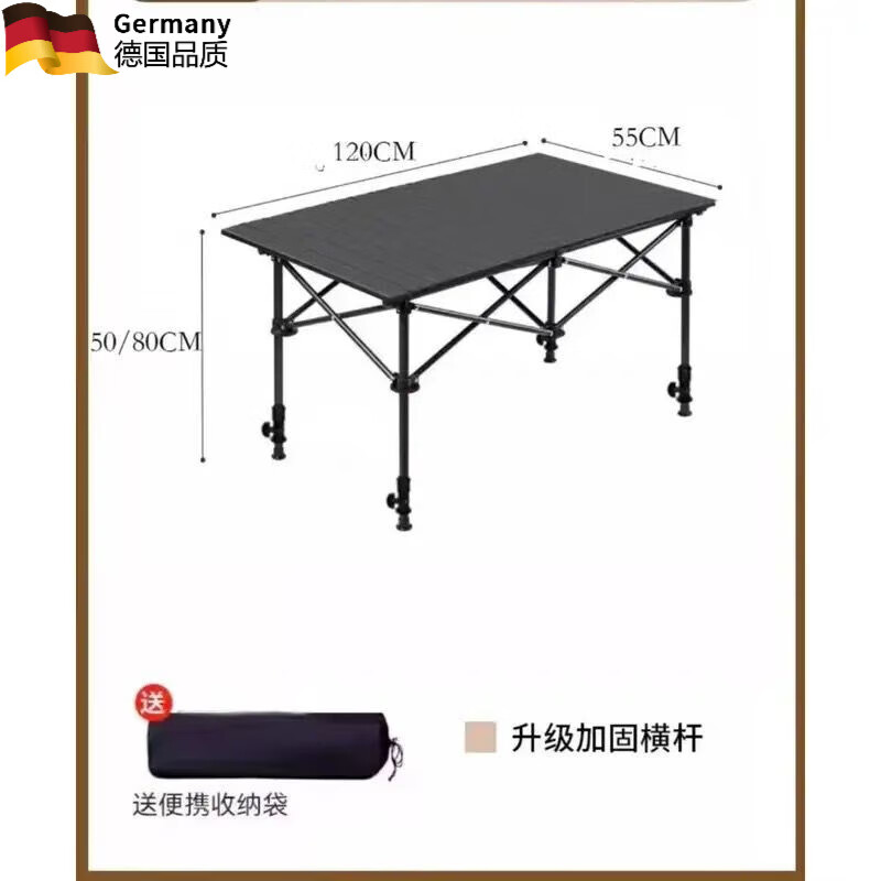 ¥79.8 朵貌德国品质多功能可升降折叠桌便携式加高蛋卷桌摆摊夜市地摊轻便简 120*55*50*80黑升降桌 133