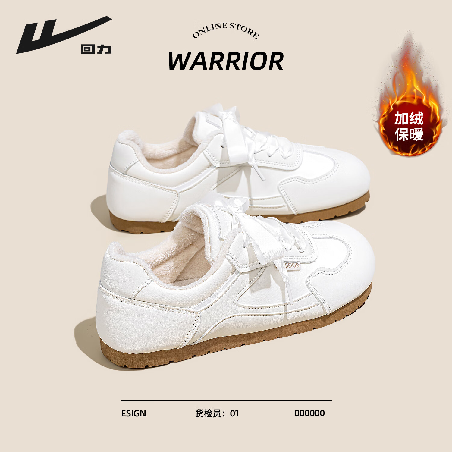 ¥59.9 回力加绒德训鞋女鞋2025冬季新款软底防滑御寒保暖百搭通勤舒适休闲鞋 白色 37 99.9