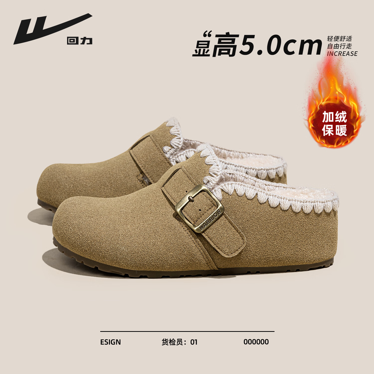 ¥59.9 回力厚底勃肯鞋女鞋2026新款轻便舒适加绒加厚保暖增高显瘦通勤棉鞋 沙色 37 99.9