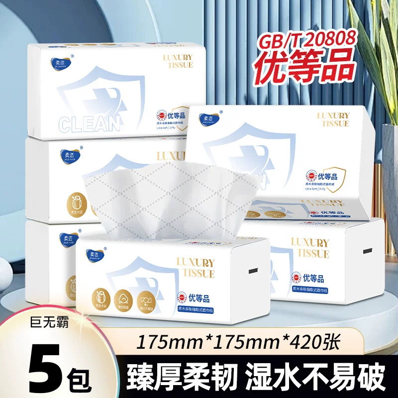 ¥7.99 优等品420张5包大容量抽纸家用实惠装餐巾纸 9.99