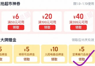 ①手淘扫图-进入领券中心,部分有5坚果糖巧品类金