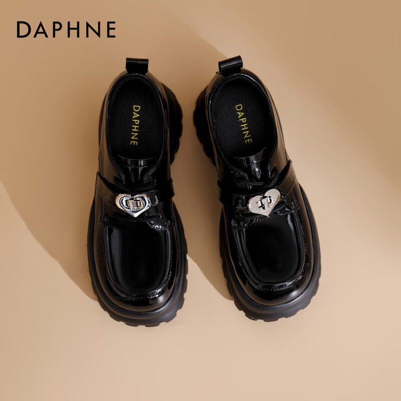 ¥89.9 达芙妮官方厚底乐福鞋女2025新款秋季百搭增高女鞋小个子英伦风小皮鞋ZJ 黑色【爱心锁】跟高6cm 40 239.9