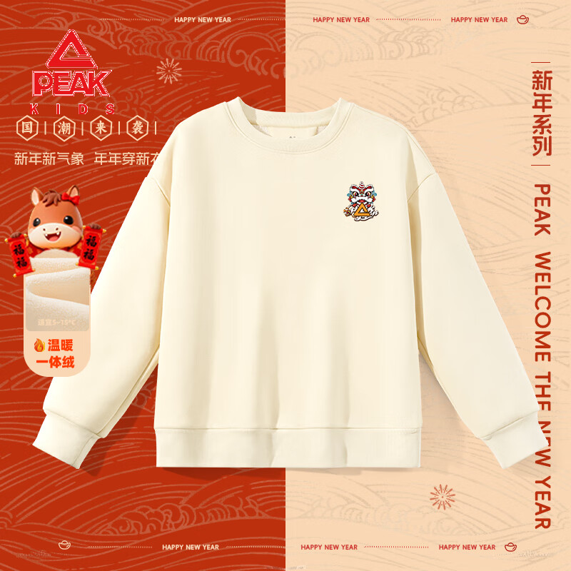 ¥49.9 匹克童装儿童加绒卫衣秋冬2025新款男童红色过年服女童本命年保暖上衣 【一体绒】杏/PK舞狮K 130 59.9