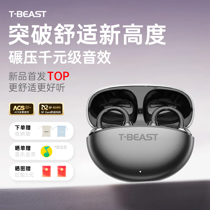 ¥79 拾光兽T-BEAST Z20 开放式蓝牙耳机骨传导概念无线运动跑步长续航通话降噪【开放不漏音丨久戴无痛感】 【星曜黑】Ai实时翻译+舒服佩戴 169