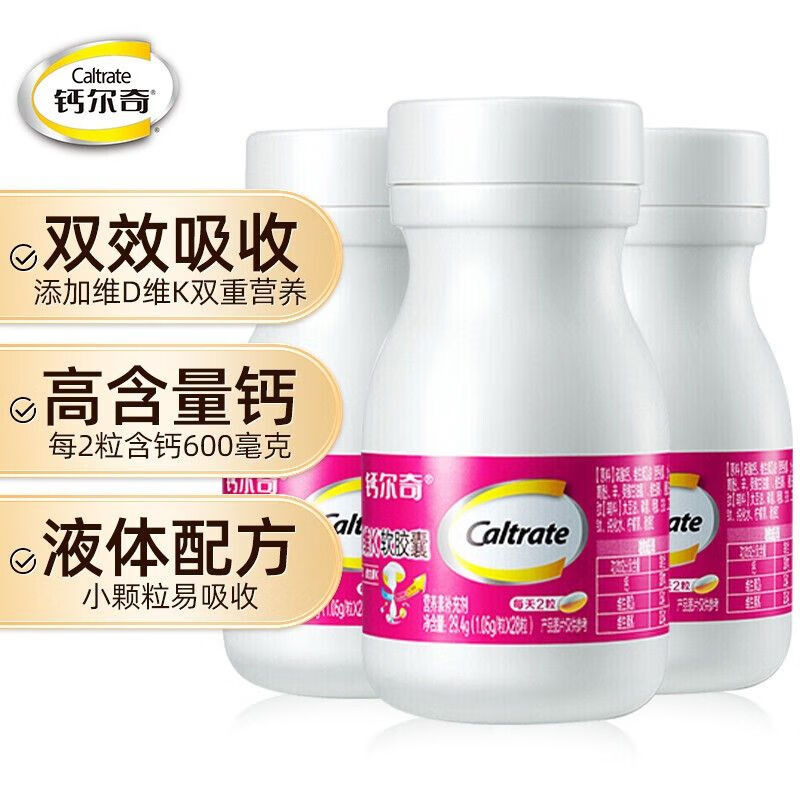 ¥45 钙尔奇钙维D维K软胶囊中老年成人补钙片非液体钙维生素D维生素K 1.05g/粒*28粒*3瓶 79