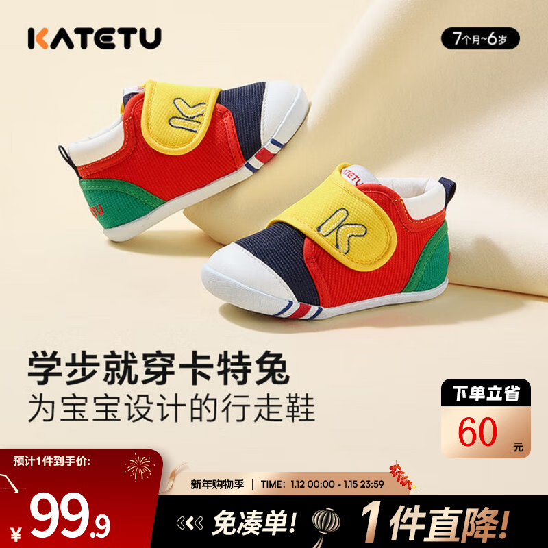 ¥129.9 卡特兔宝宝学步鞋秋冬婴儿童鞋加绒宝宝鞋子机能鞋男宝宝女童幼儿室内鞋 红黄蓝-秋冬加绒 23 内长14.0cm 脚长13.0-13.5 159.9