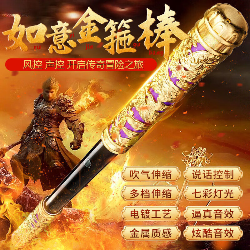 ¥71 VTR孙悟空如意金箍棒可声控自动伸缩激光宝剑儿童玩具男孩魔法荧光棒 【黄金如意】智能吹控声控丨声光互动丨三挡模式 【新版可充式八大升款】高端品质区分同行 73