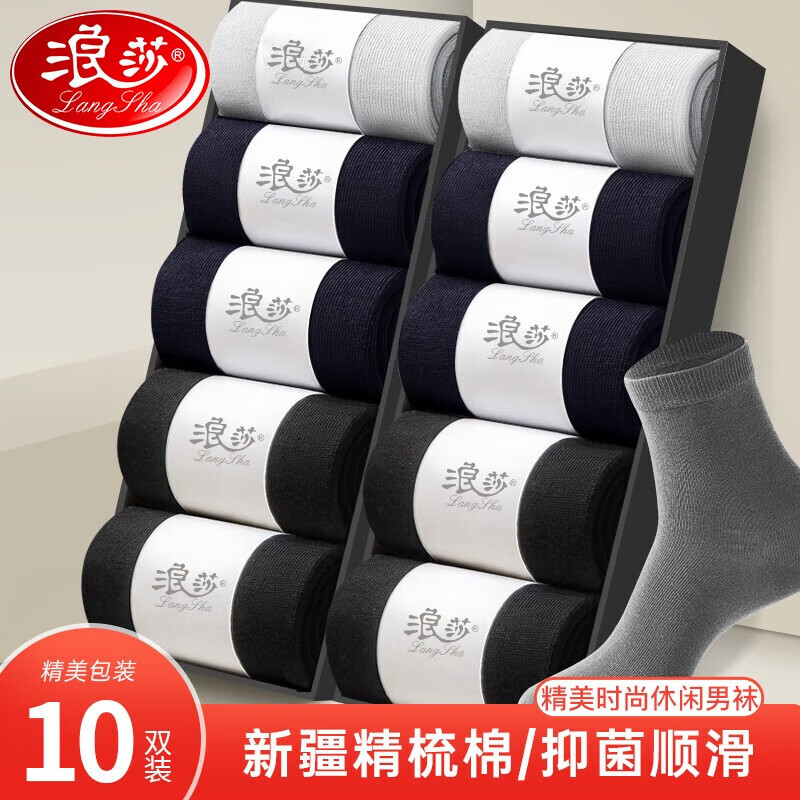 ¥24.8 浪莎男士袜子男纯色简约舒适百搭中筒袜秋冬款透气吸汗商务休闲男袜 黑4藏青4深灰2 均码 49.8