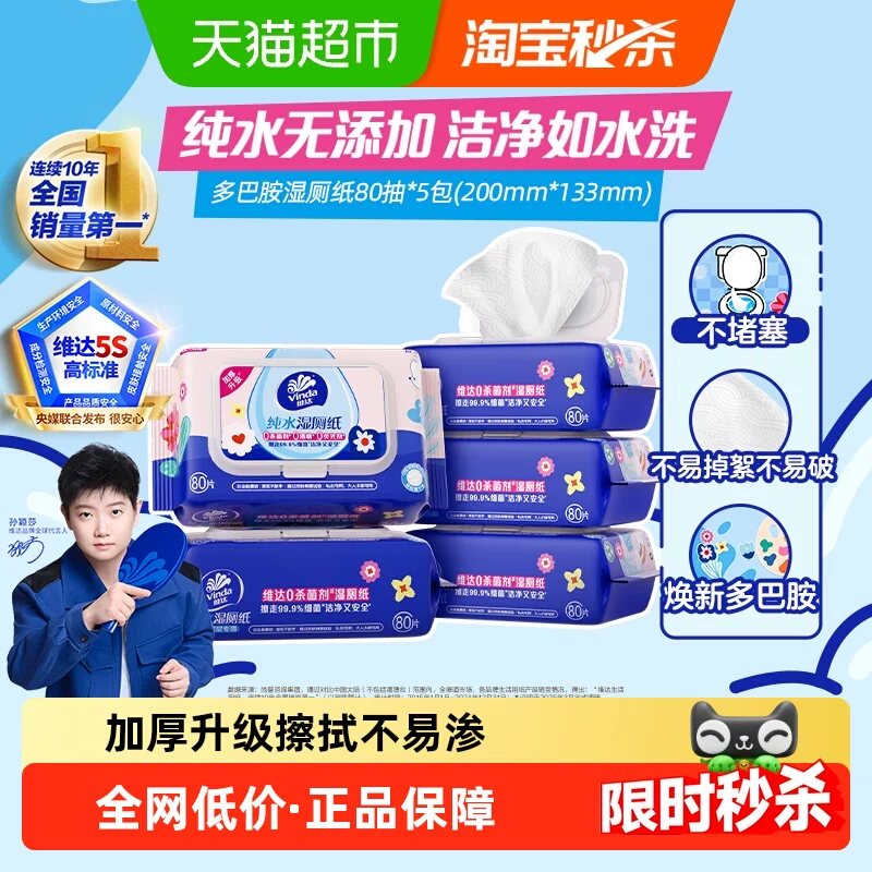 ¥25.02 维达多巴胺系列纯水湿厕纸80片5包 25.02