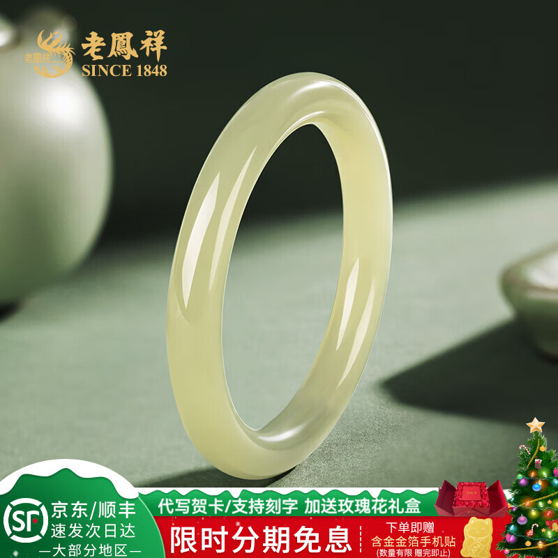 ¥439 老凤祥和田玉手镯碧玉平安镯国风汉服玉镯子送女友老婆新年生日礼物 #(56-58) 459