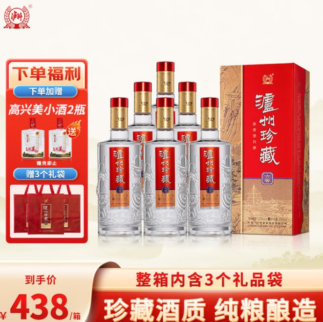 288元包邮!泸州老窖珍藏酒 整箱 500ml*6瓶+送100ml*2瓶 到手共8瓶