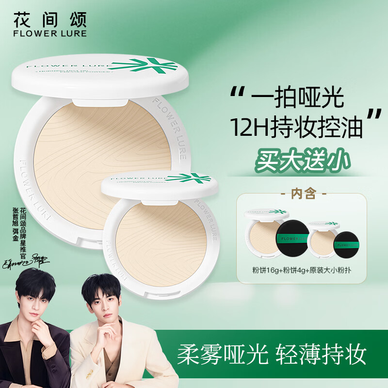¥79.9 Flowerlure花间颂粉饼16g+4g定妆控油持久补妆粉底遮瑕彩妆化妆品干油皮新年礼物 Y01象牙色【16g大+4g小】 16g+4g 89.9