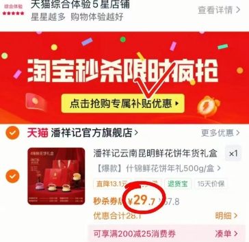拍首项共500g‼️四种口.味 在售价57.8元,领15元券,商品页价格下拉详情页-淘宝秒杀点进去拍,实付低至29.3元包邮;