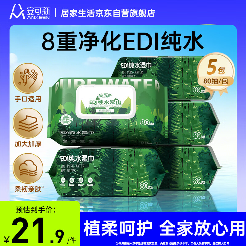 安可新EDI纯水湿巾80抽*5包 黑五折后价8.62元