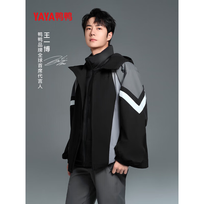 ¥459 鸭鸭(YAYA)王一博同款冰壳系列羽绒服可拆卸男女情侣一衣三穿冲锋外套潮 黑色 2XL 699