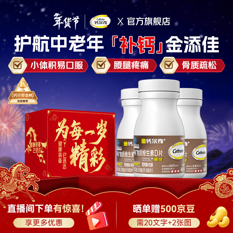 钙尔奇添佳成人钙片60粒*3瓶 仅72.2元