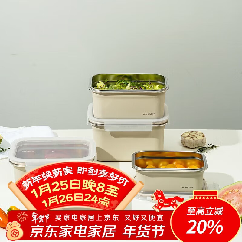乐扣乐扣不锈钢保鲜盒2L米色到手价31.14元