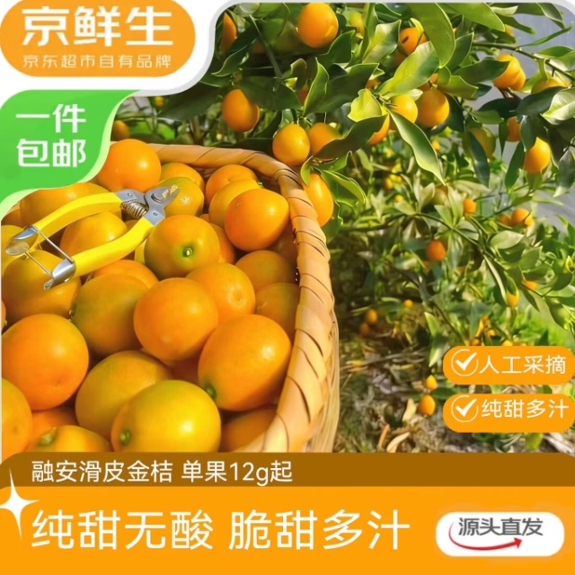12.9元包邮!京鲜生 广西脆皮金桔 净重2斤(单果12g+)