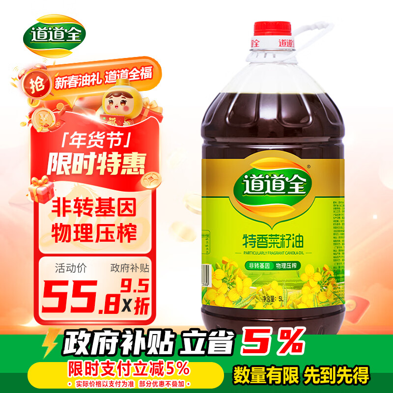 道道全菜籽油 折后价45.7元/桶