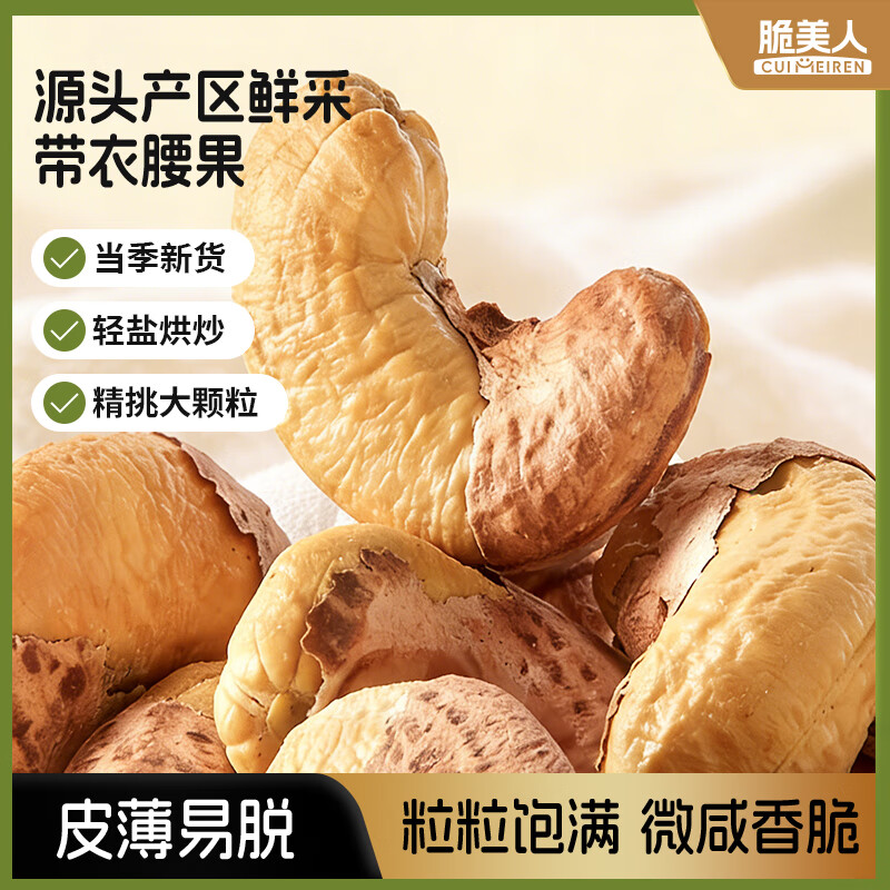 脆美人紫皮带衣腰果100g 7件117元返91元超市卡