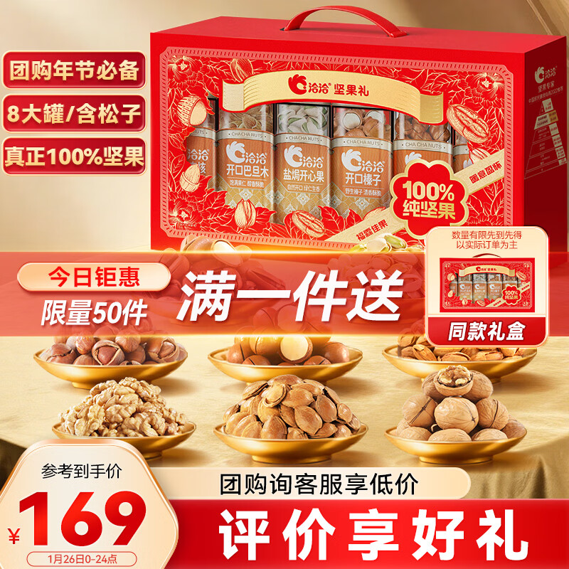 洽洽纯坚果礼盒1383g/8罐礼盒买1送1最终到手价110.8元