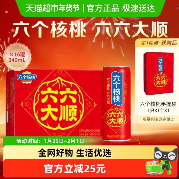 42元包邮!养元六个核桃六六大顺240ml*16罐