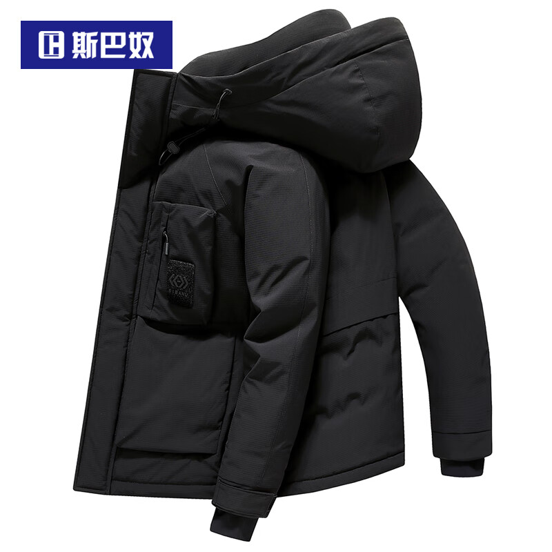 ¥209.75 斯巴奴加厚羽绒服男短款2025冬季新款休闲连帽鸭绒保暖冬装外套潮工装 黑色 L 623.75