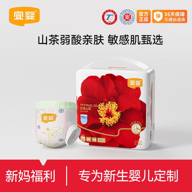 ¥12.91 宜婴弱酸红山茶花裤小内裤干爽透气拉拉裤新生儿尿不湿 拉拉裤M16片【Mini装】 15.91