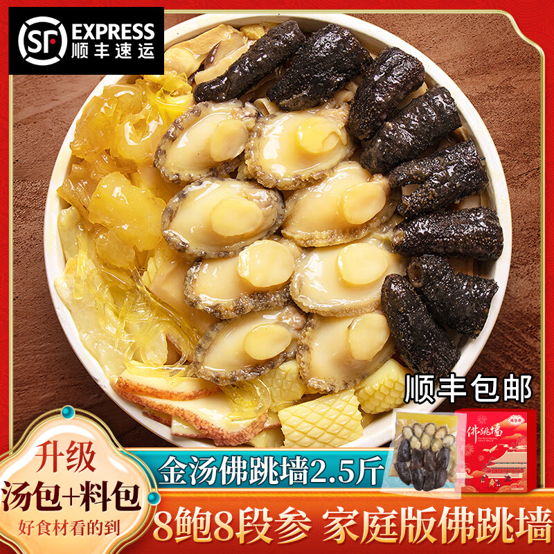 ¥58.9 满家乐 金汤佛跳墙 加热即食 年夜饭套餐 鲍鱼 海鲜速冻菜肴礼盒半成品 8鲍8段参家庭版佛跳墙1.25kg盒装 129.9